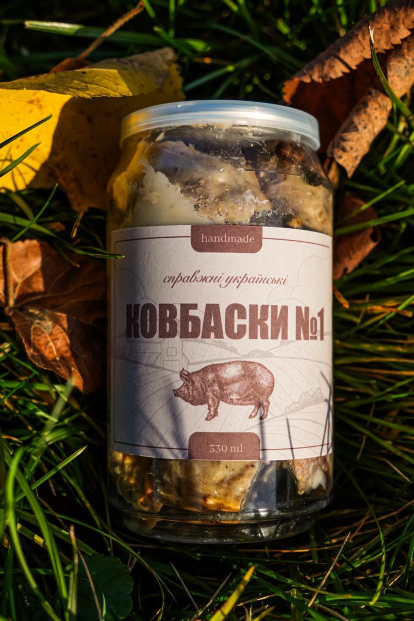 Домашня ковбаса зі смальцем створена за традиційним рецептом із добірного м’яса свинини та натуральних спецій. Завдяки запіканню у смальці вона набуває ніжної текстури, золотавого кольору й насиченого аромату, що переносить у теплі спогади дитинства.